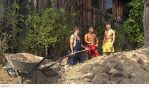 While Callum Dean and Hudson Malone are put to work with their shovels, it seems that Hugo Carter is a little too delicate for this kind of labor and contributes to the work effort by offering to utilize his best talent and offering up his ass to both his sexy comrades.