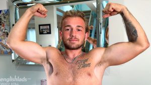 Shaun Thompson appears in his first-ever video today after doing a photoshoot for us on FitYoungMen! Shaun is a young, straight, hairy footballer with an amazing physique. He has defined muscles, very handsome features, and dusty blond hair! Shaun’s cheeky, confident personality shines through as he strips out of his clothes to show off his fit, hairy body. Shaun gives us a good muscle show before teasing his uncut cock to a rock-hard erection and enjoying wanking himself. Comfy on the sofa, Shaun power wanks until he cums, and wow, he shoots a big load all over himself!