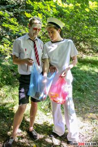 You might argue that smooth boys Riley and Skylar are a little old to still be trick or treating at Halloween, but these two adorable British boys know how to make it far more fun than it might sound. In the woods and with bags full of candy the two are soon ready to enjoy something a little savory, starting with some delicious cock sucking, leading to some ass licking, and finishing with a wild fucking for sailor boy Skylar! The tasty teat of a cum-covered candy is the perfect finish.